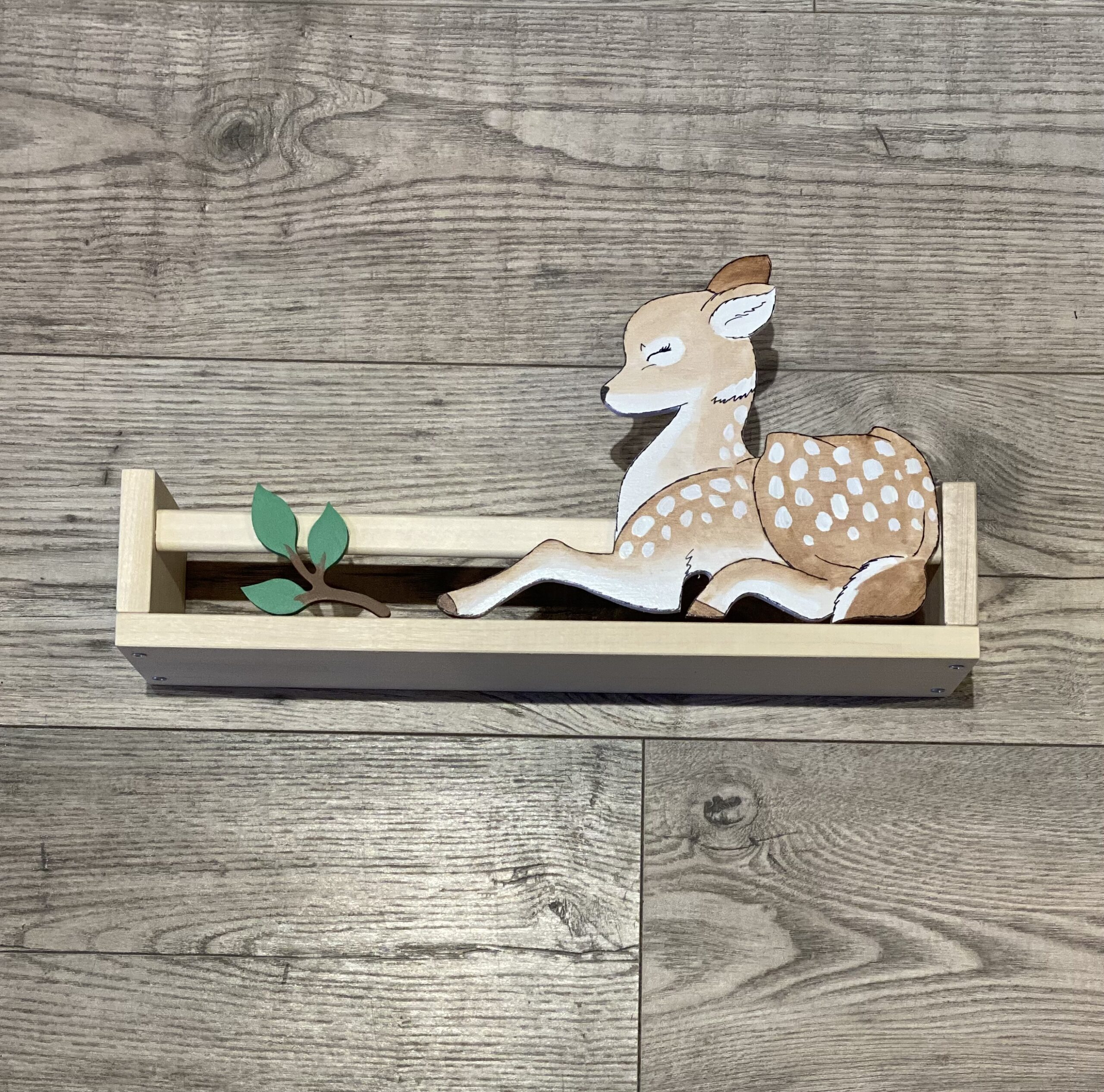 Sætasta hilla í barnaherbergið, fullkomin fyrir bækur, myndir eða aðra fylgihluti. Handmáluð, ofboðslega krútt, hver hlutur er einstakur.