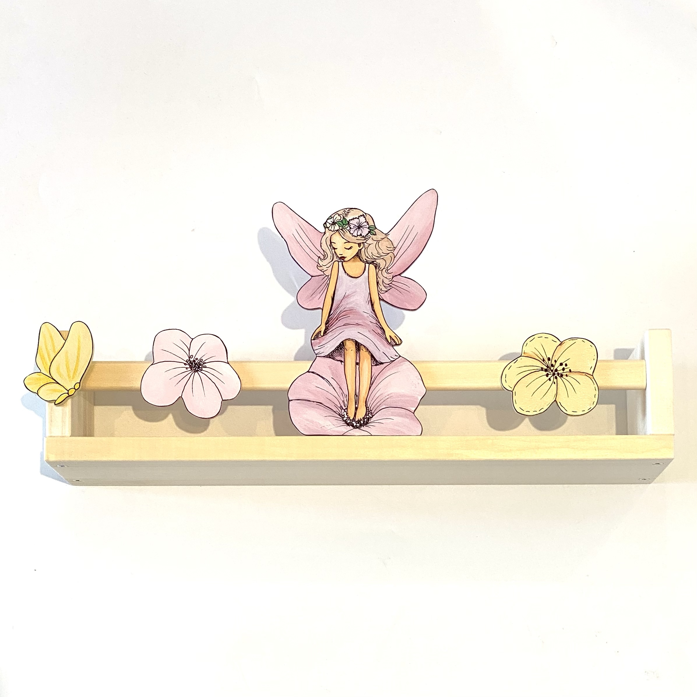 Sætasta hilla í barnaherbergið, fullkomin fyrir bækur, myndir eða aðra fylgihluti. Handmáluð, ofboðslega krútt, hver hlutur er einstakur.