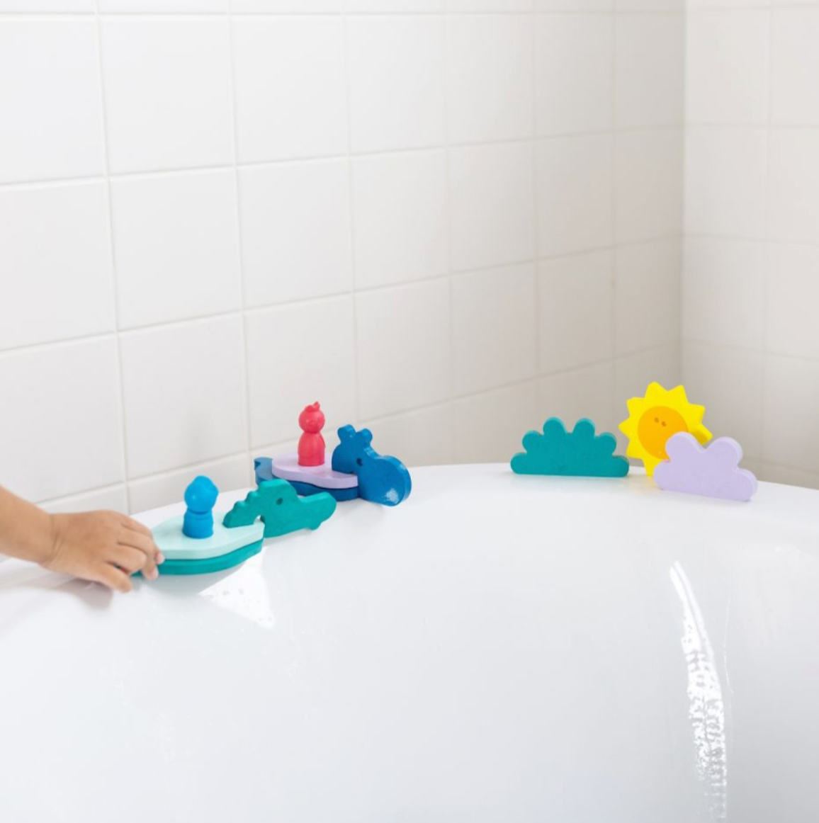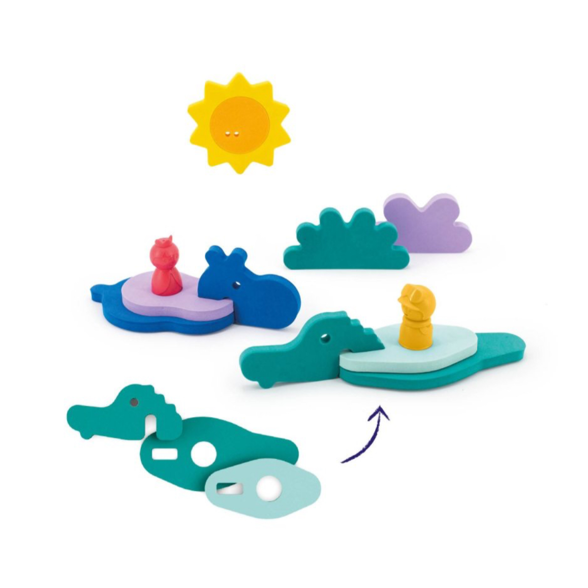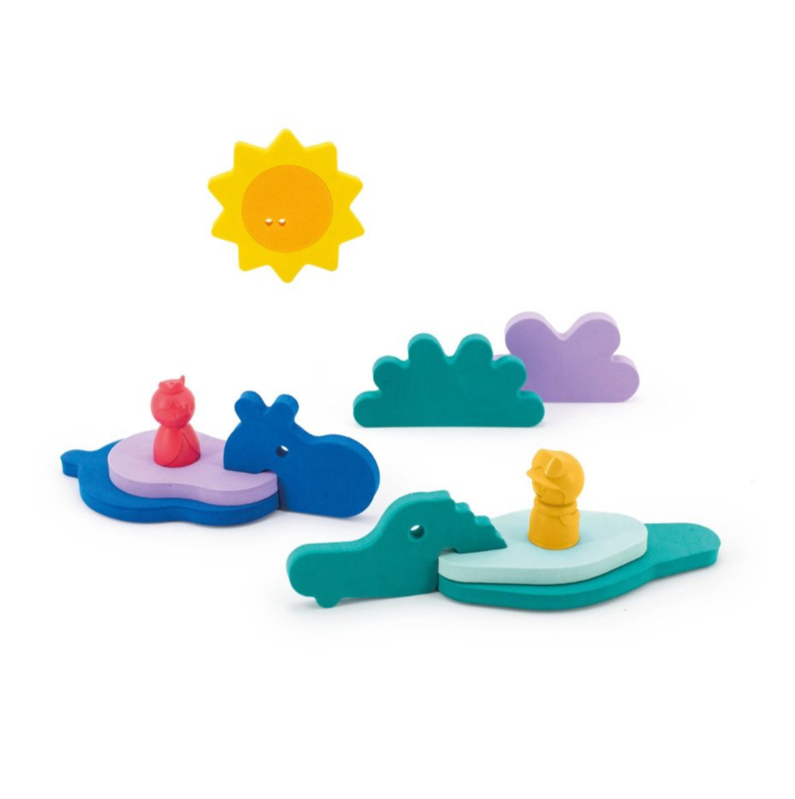 3D puzzle for the bath that offers the opportunity to venture into the jungle and encounter both a hippopotamus and a crocodile. This set stands out from other puzzles by Quut because it is easier to “build vertically”. There is ample room for hours of play in the bath with the 3D bath puzzle, and the various puzzles and figures interact seamlessly. The blocks adhere when wet.