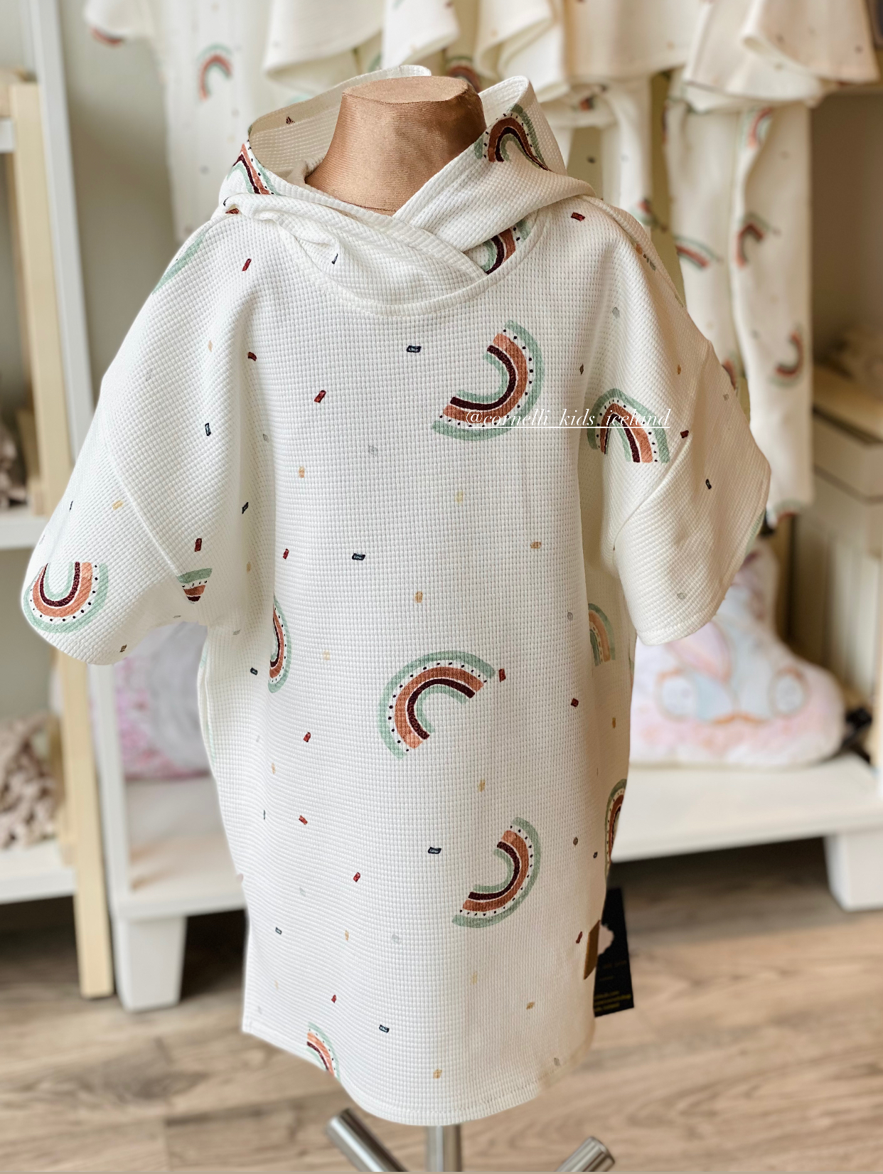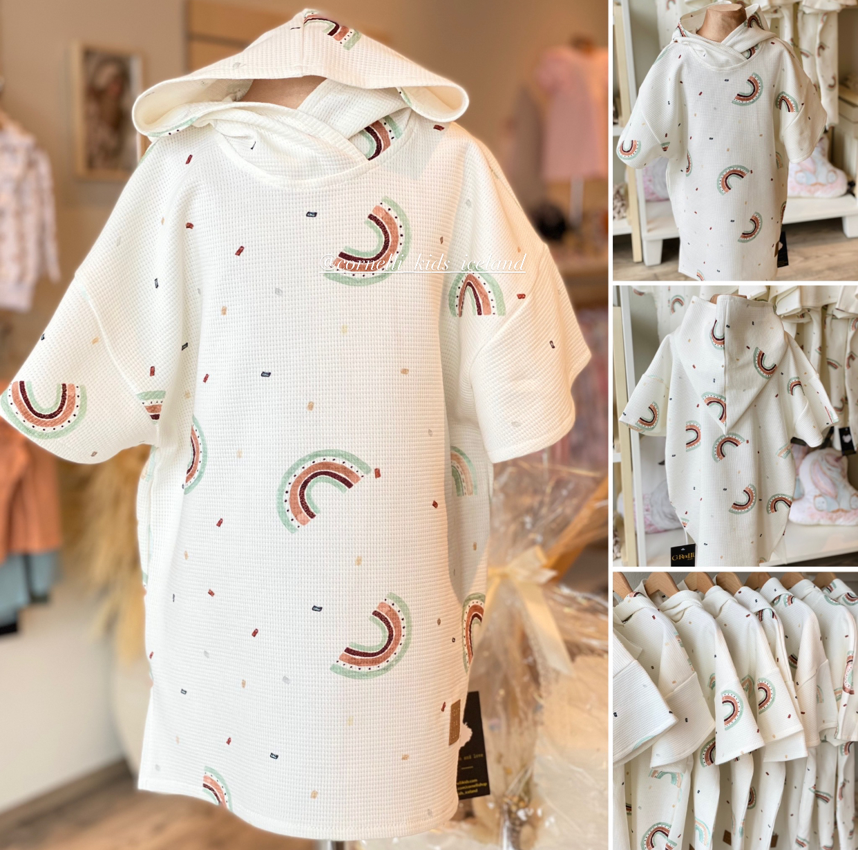 Poncho baðsloppur með hettu. Einstaklega mjúkt. Hentar vel eftir baðtímann, sund eða á ströndinni. Baðsloppur/poncho er bæði hlýr og virkar vel sem handklæði.