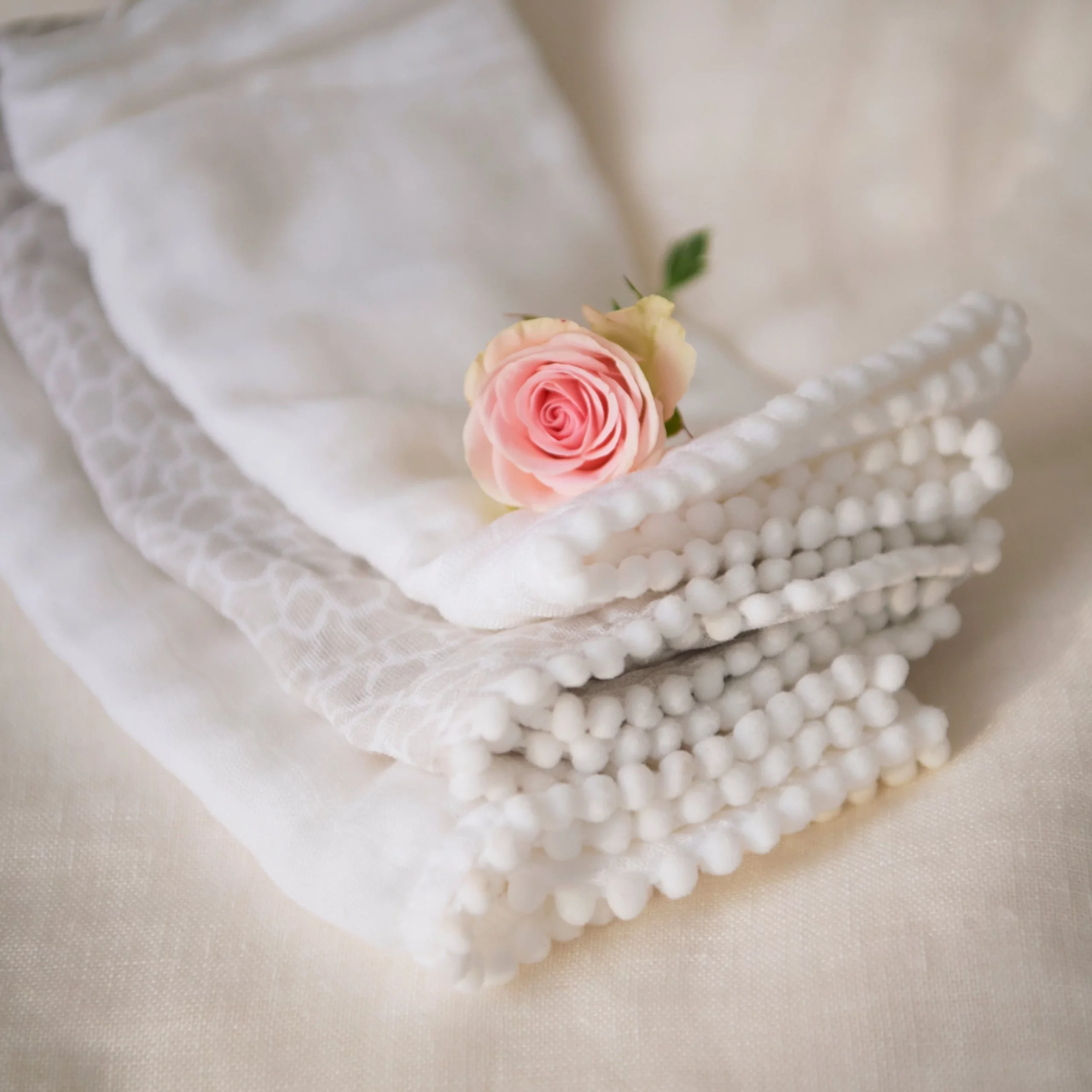 Soft security blankets or wipes made out of bamboo and organic cotton muslin. The satin-trimmed, breathable squares are just the right size for tiny hands to hold in the crib or on the go. The set is complete with three blankets, ensuring there will always be one available for snuggling if the other ones are in the washing machine. Wash at 30 degrees.