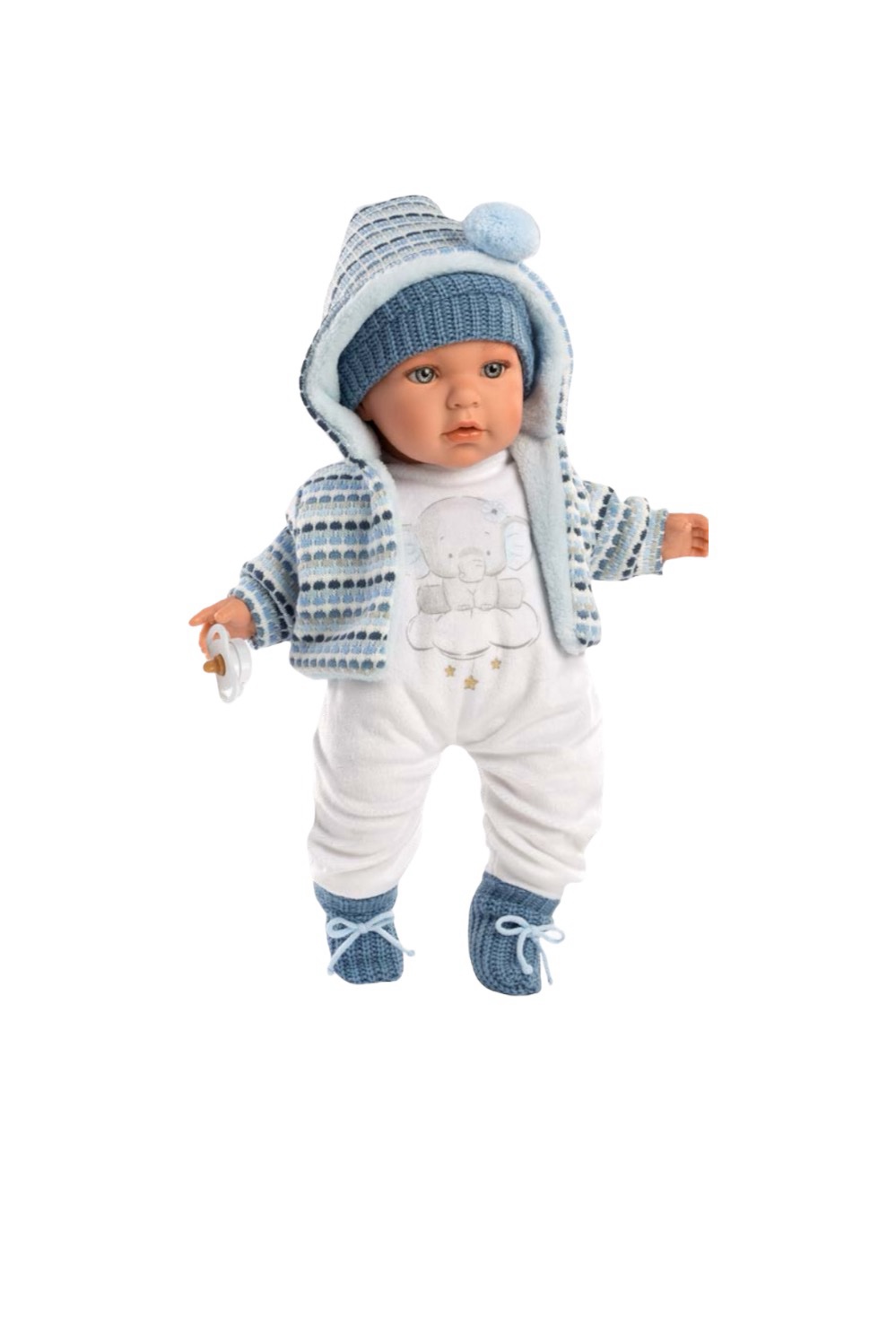 Made in Spain, doll is 42cm, has quality tactile Spanish vinyl arms, legs and head, and a cudlly soft body. He can sit and lie down and take many poses.