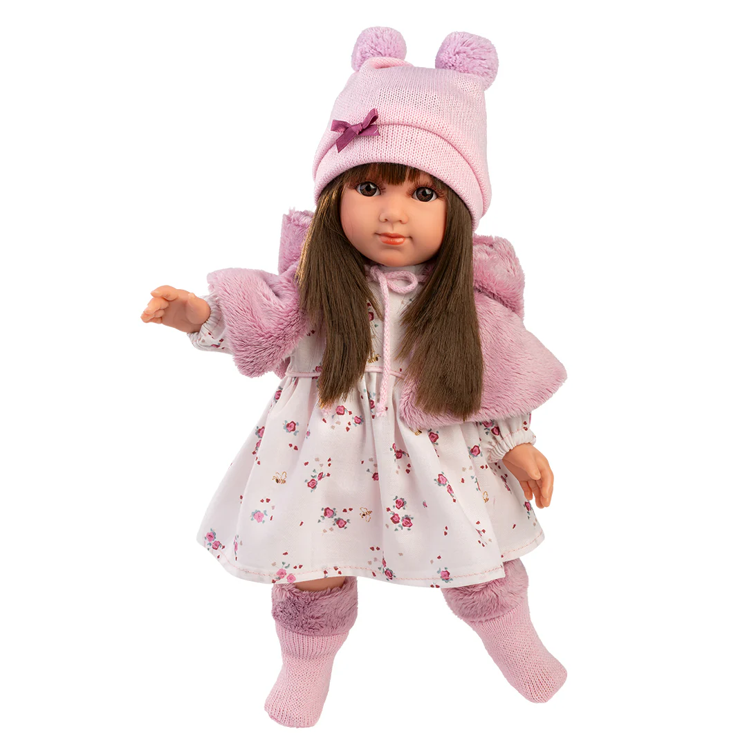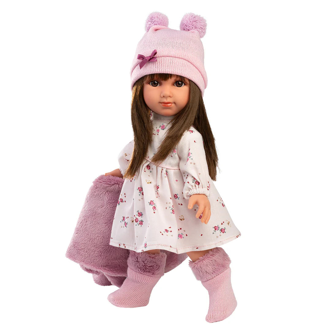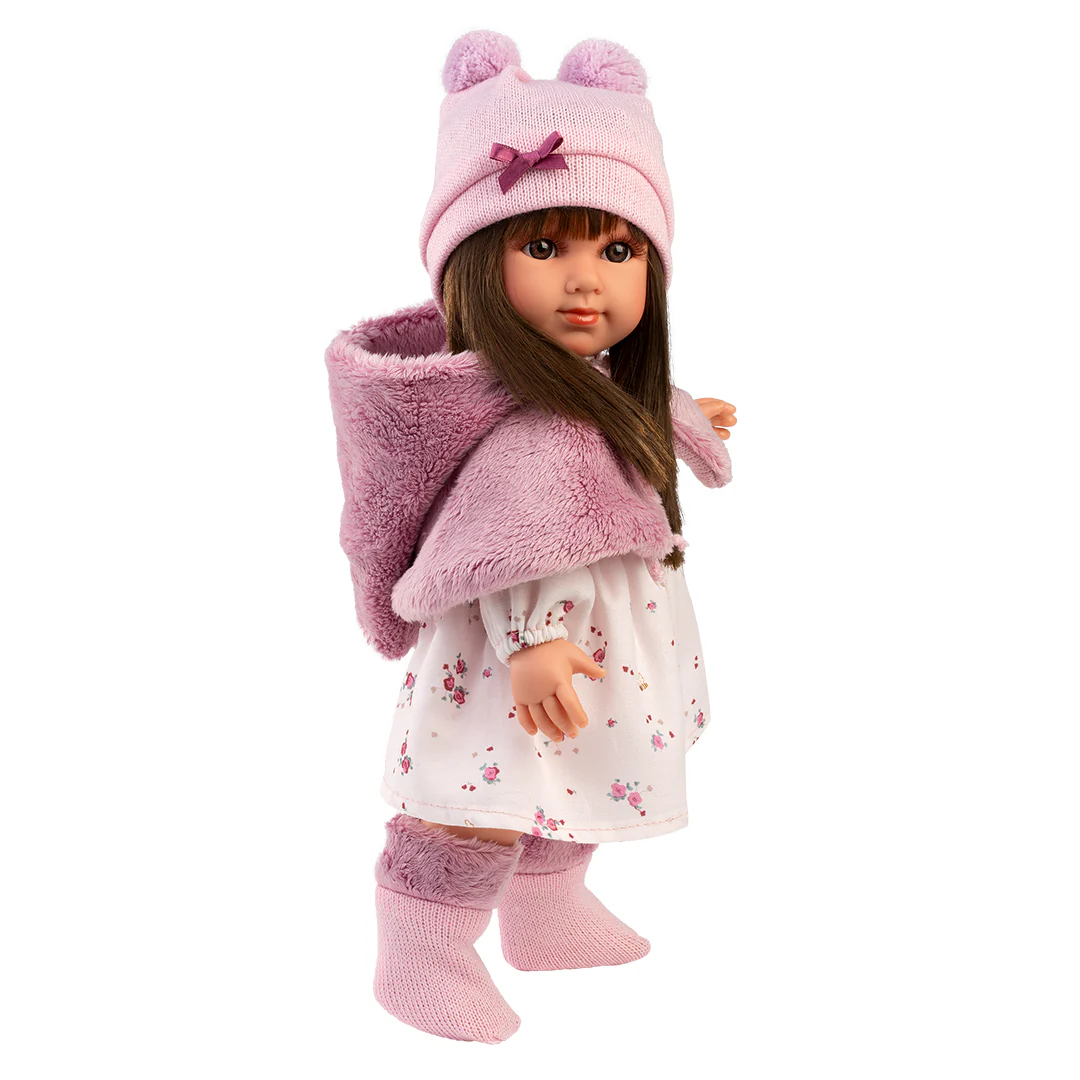 • The doll comes with her trendy outfit in a high-quality gift box, which makes it the ideal gift for different occasions, such as Christmas or birthday. Elena wears a printed fabric dress, a white hat and socks in delicate pink. With its cuddly hooded coat, it is also perfectly dressed for winter trips.