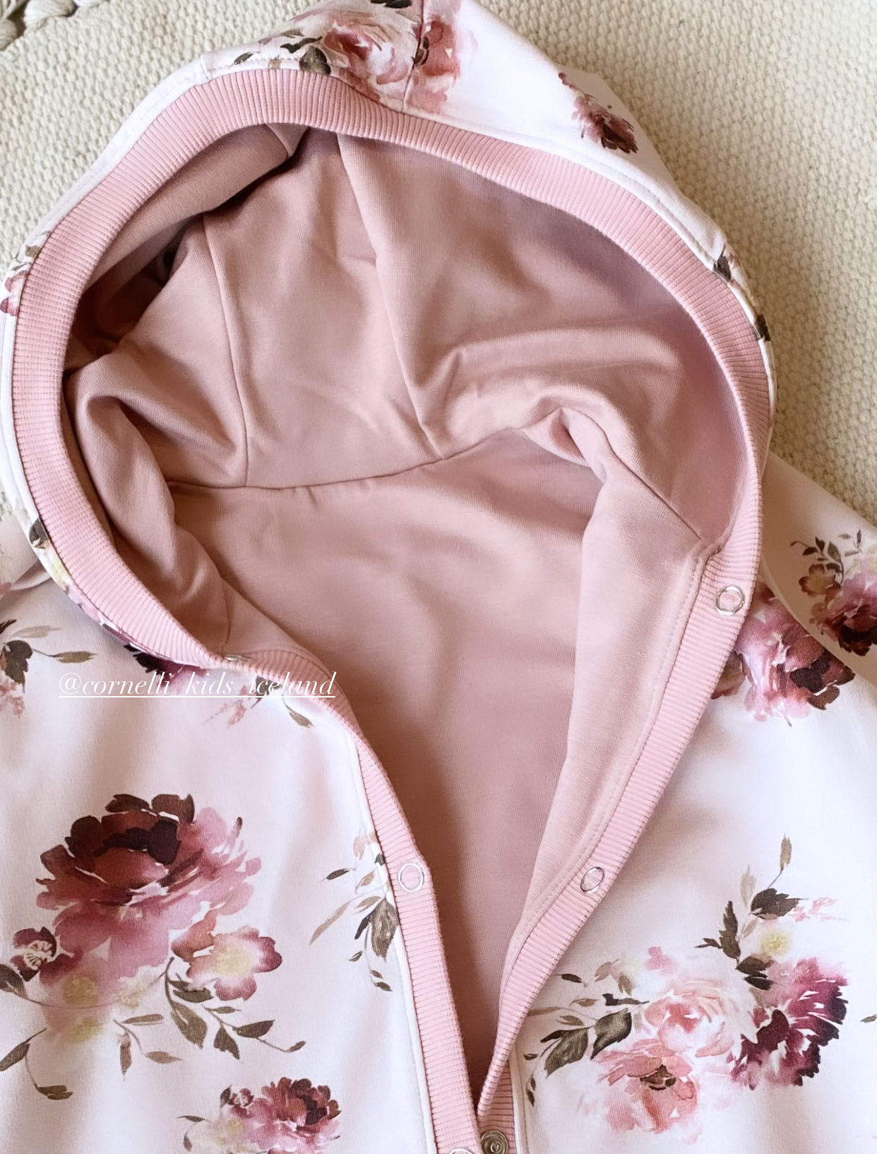 Gallinn er hannaður úr tvöföldu efni: silkimjúkt bambus efni að innan sem leyfa húðinni að anda vel í gegn og OEKO-TEX bómull að utan. Opnast með smellum. Yndislega mjúkur.