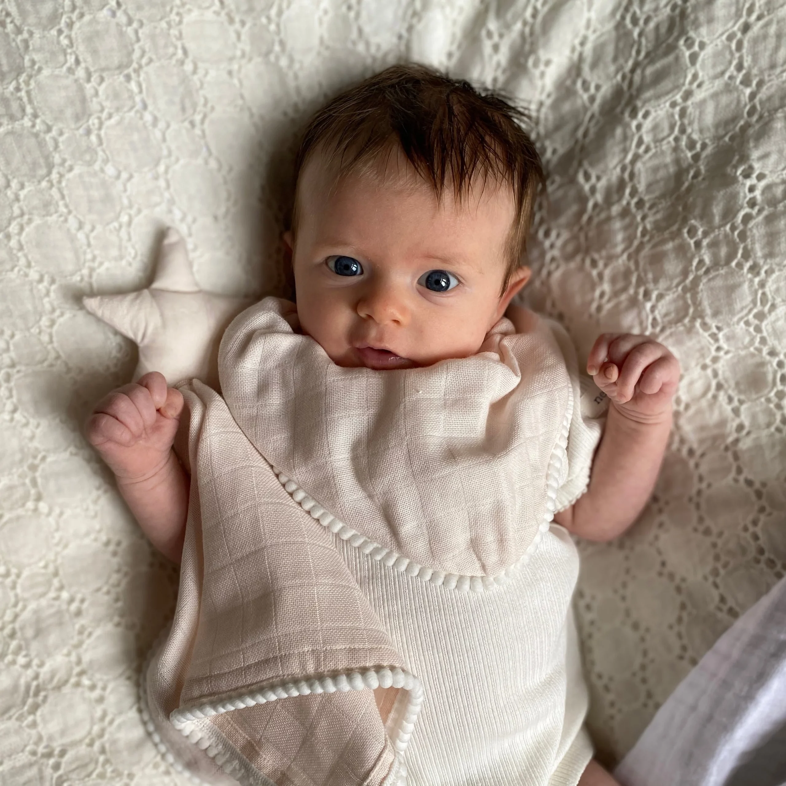 Cute and playful cuddle cloth made from a thin and smooth muslin fabric in 100% organic cotton. Machine wash 30 degrees with similar colors.