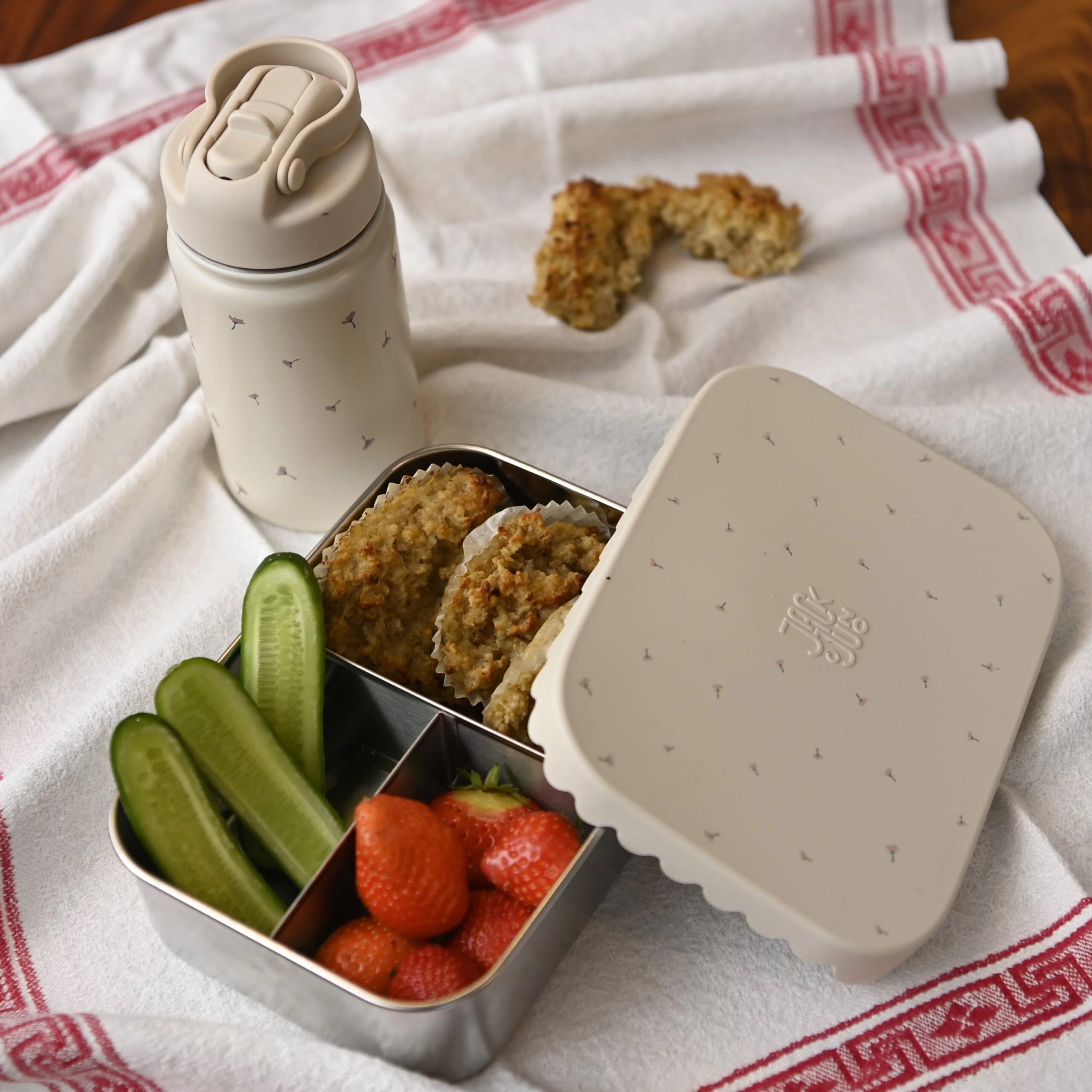 Made with a durable stainless steel base and a high-quality food grade silicone lid (LFGB certified), this leak-resistant lunch box is perfect for little ones at home, preschool, or on the go. Designed to be safe, easy to open, and just the right size for balanced meals or snacks. The charming floral print makes it a joy to bring out at every mealtime.