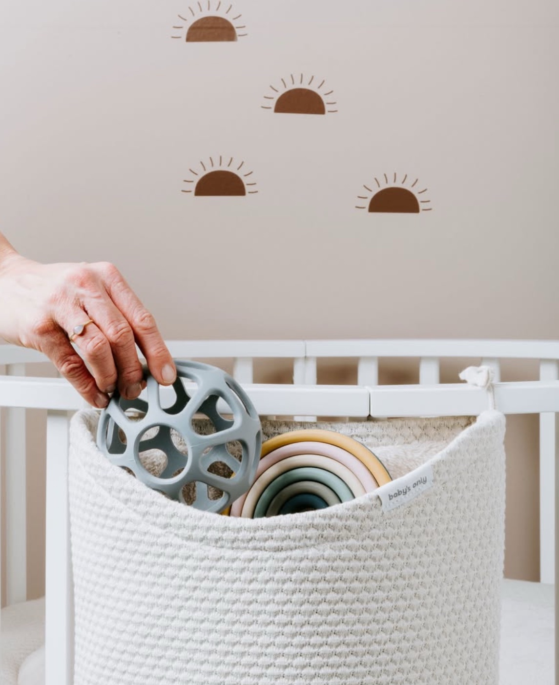 The Baby’s Only toy ball is a multifunctional toy. Silicone toy ball is designed in such a way that your child can easily grasp it with his little hands, and furthermore, it is very light. This guarantees hours of fun for your child. The toy ball also functions as a teething toy. The material is nice to bite on for relief when teething.