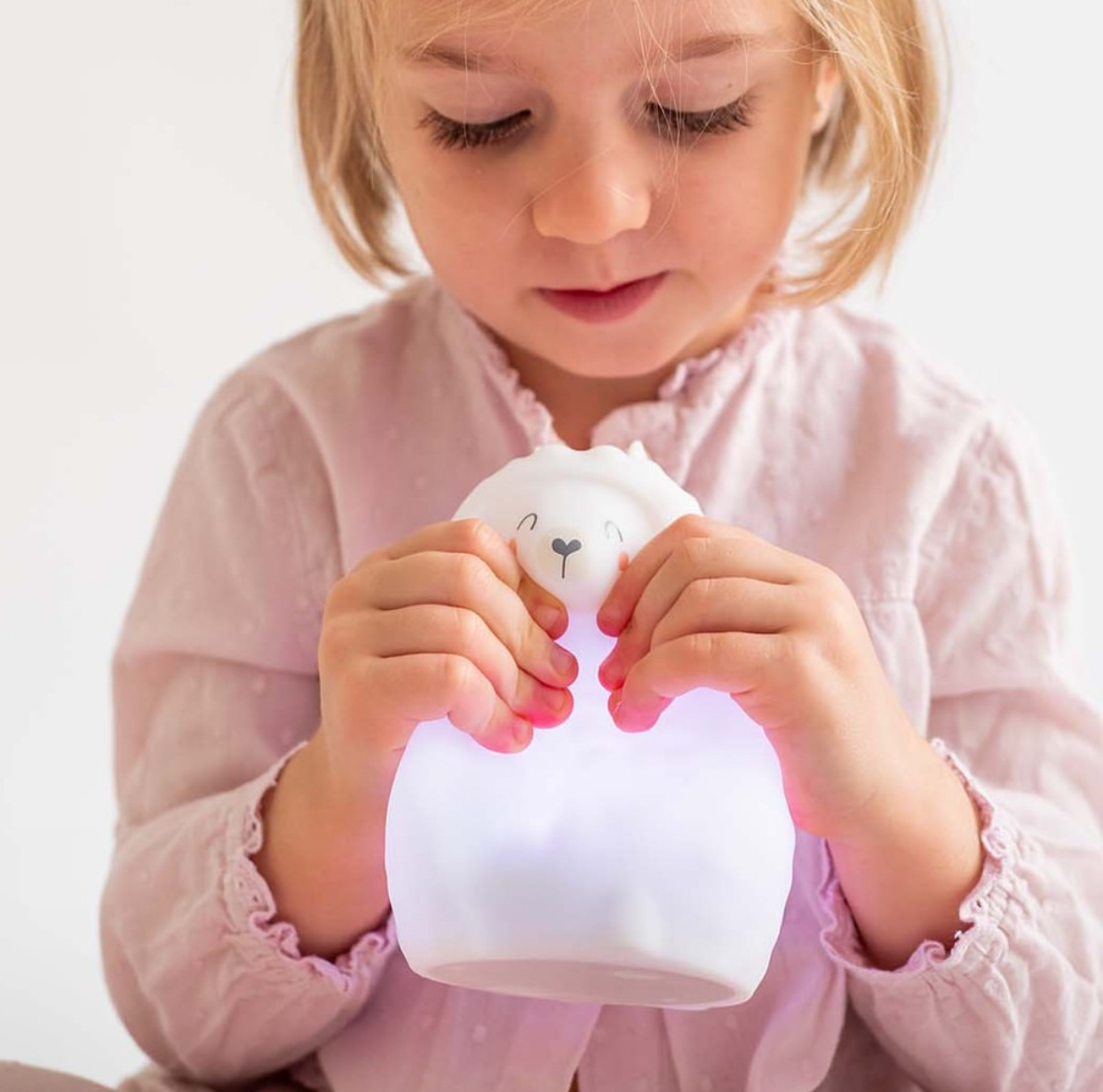 Made of silicone, it is soft and gentle. Without Bisphenol – A or Phtalates. Tactile! With a very light touch, you can explore the different lighting modes and create magical environments. It is very easy to use, even for the little ones. Perfect to help your baby relax but also to have a great time. 5 light intensities: · Soft white light (touch 1): soft lighting to relax. · Bright white light (touch 2): more intense, to see better in the dark. · Rainbow (touch 3): nice slow color transition. · Random colour (touch 4): goes from one fixed color to another. · Fixed colour (touch 5): surprise! Try to stop it in your favorite color. • Tactile • ON / OFF button. • Echo – consumption. • LED. • Cordless. The box includes: night light, , screws, screwdriver. 3 AAA 1,5 V batteries required (not included).