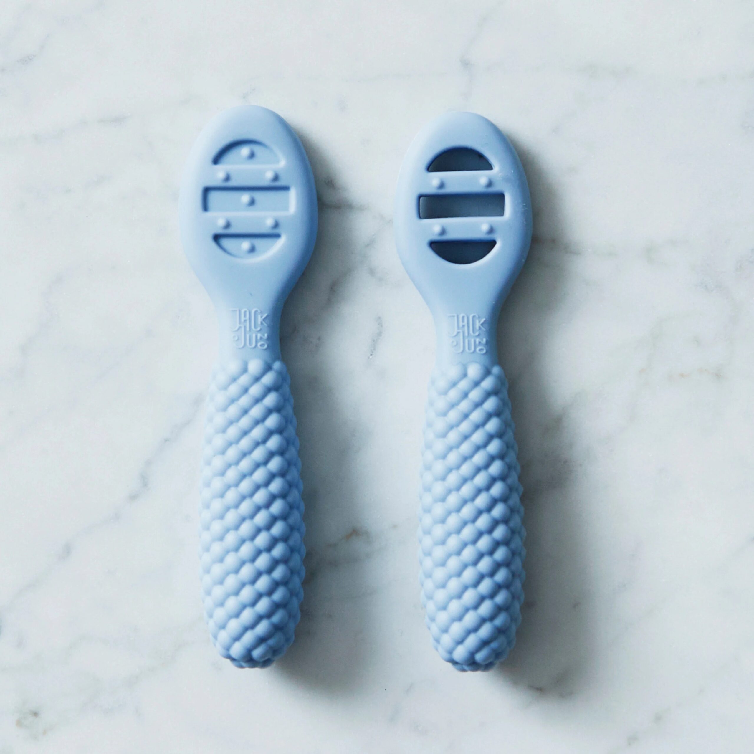 Pre-Spoons are crafted to ease your baby’s journey to self-feeding. Stage 1 features a solid surface, perfect for smooth purees. As your little one grows, they can transition to Stage 2, which has open slots for scooping thicker foods like mashed potatoes. Both spoons have sensory dots on the sides, offering gentle relief for teething gums. The bubbly design makes it simple for little hands to grip.