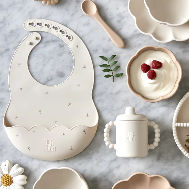 Soft and lightweight, patterned bib made of food-grade silicone with a convenient pocket to catch dropped food and an adjustable neck size for a secure and comfortable fit. The bib can be cleaned with just warm water and soap. Please do not use in a dishwasher at high temperature as it may cause the pattern to partially come off.