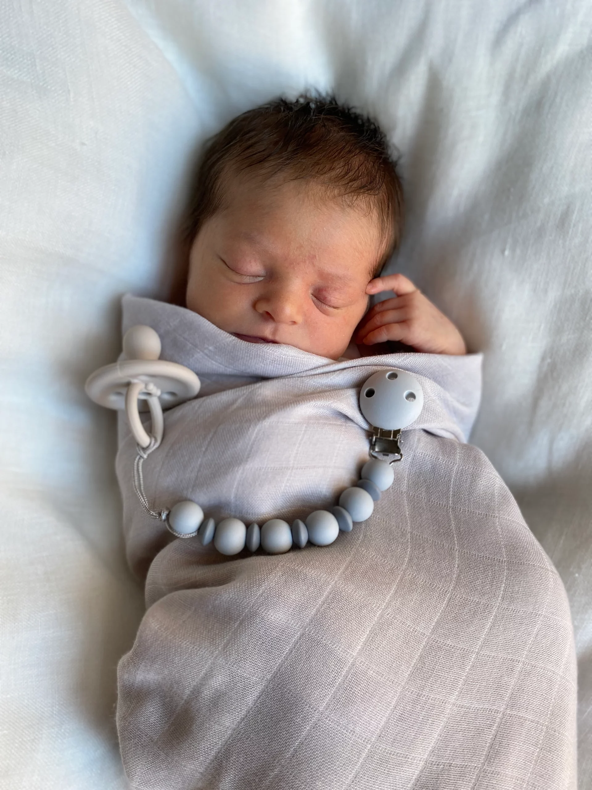 Handmade pacifier clip made of soft food grade silicone – perfect for your baby’s favourite pacifier but could also be used as a teether.