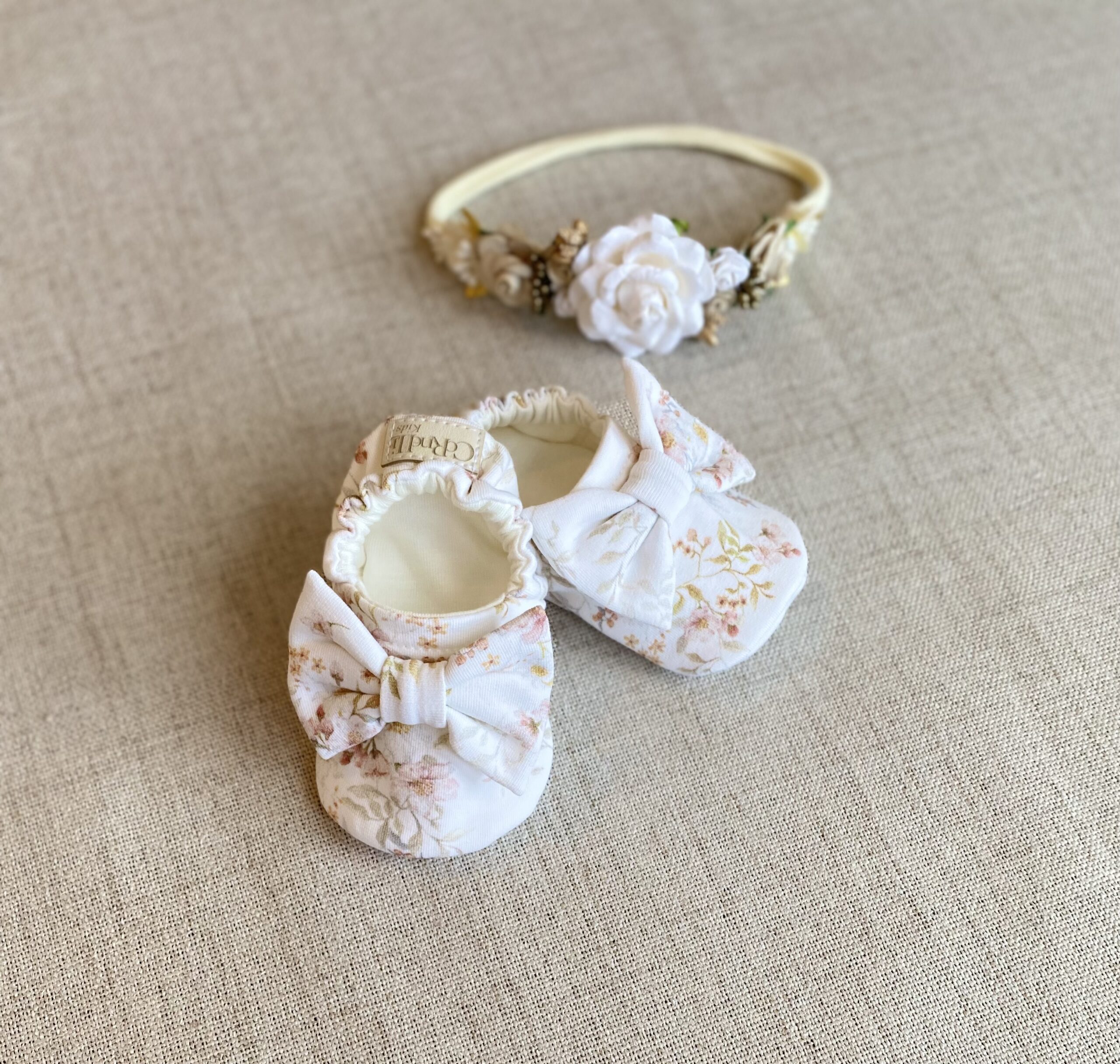 Mjúkar bómular ungbarnaskór með bambus efni að innan.