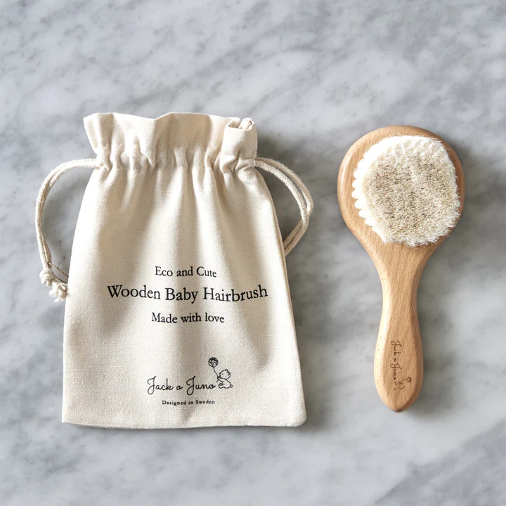 Experience the utmost care with our thoughtfully designed wooden baby hairbrush. Crafted using only the finest quality, natural goat hairs and FSC-certified beech wood, this eco-friendly brush delicately smooths hair and helps prevent cradle cap. Its soft bristles ensure that no pressure is exerted on your baby’s delicate scalp, making it the perfect choice for infants and newborns.