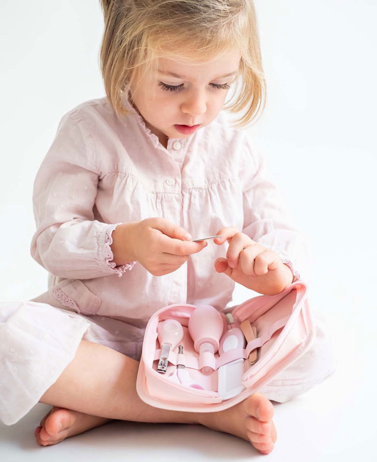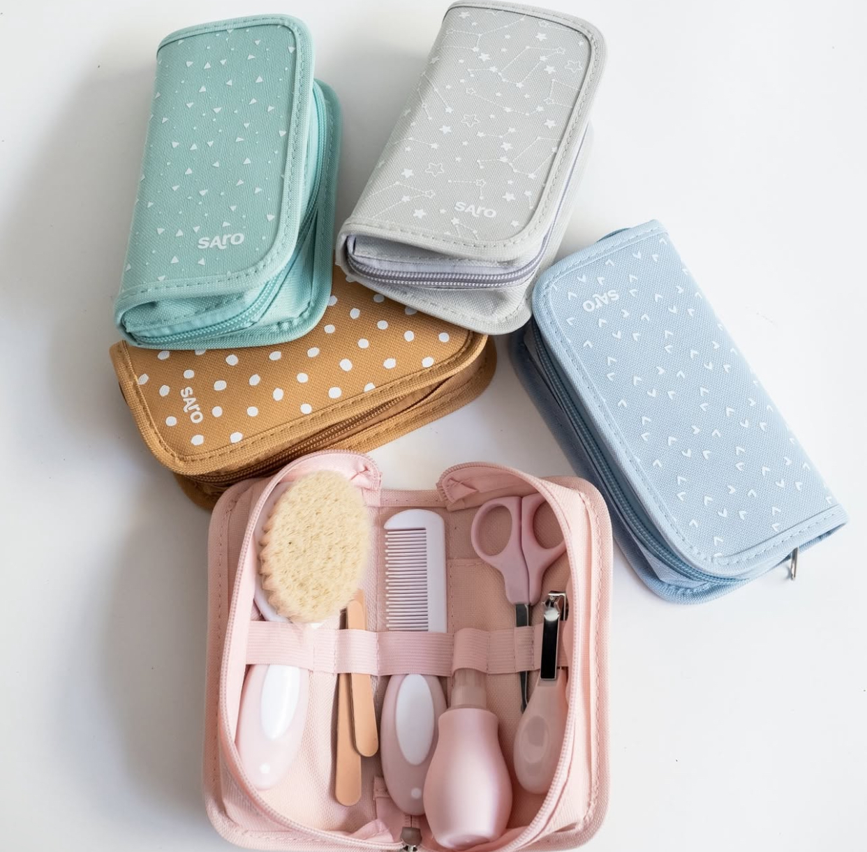 Complete toilet bag, with all the necessary items to tidy the baby up, in a practical case with zipper. Perfect for travelling, since it contains all the necessary toilet items. Including: • Natural bristles brush • Comb • Nasal aspirator • Scissors • Nail files • Nail clipper Toilet-case with a nice and fashionable design for your baby. Choose yours!