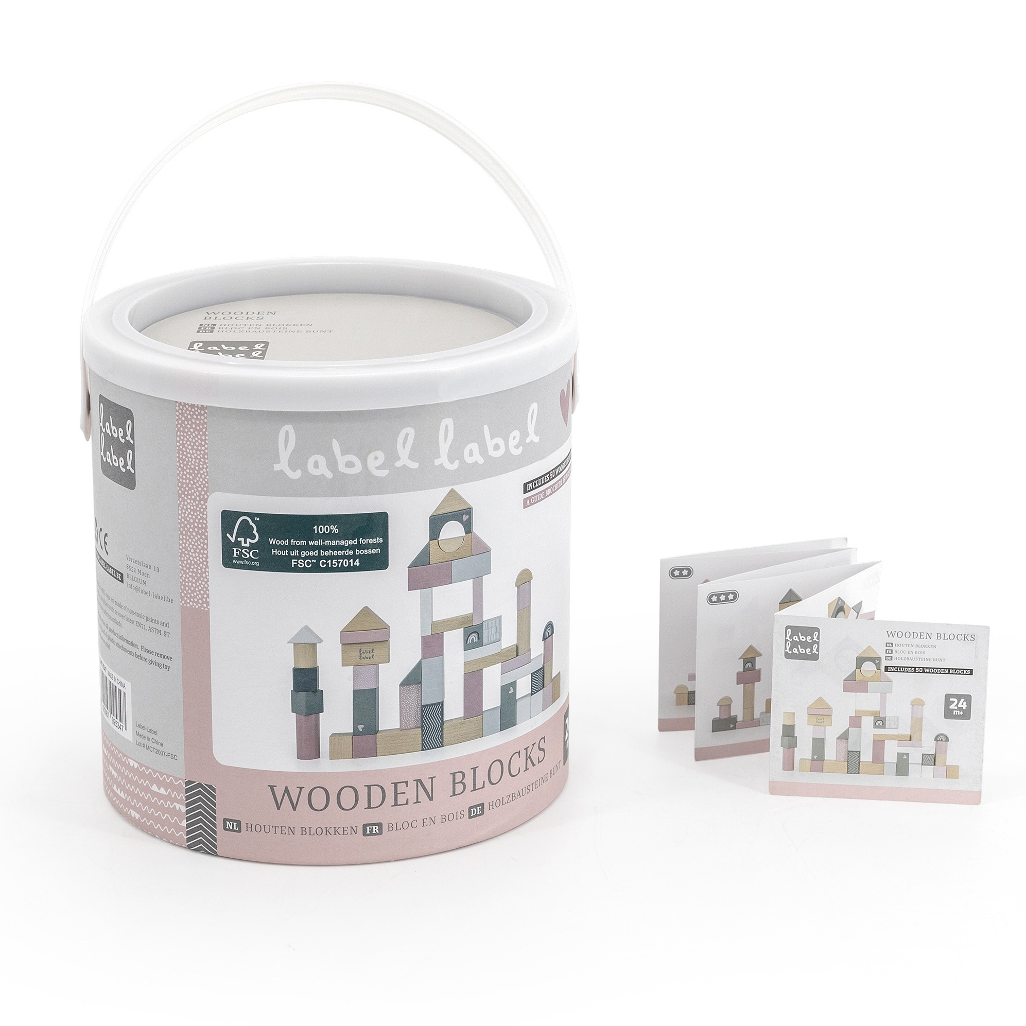 The Label Label wooden blocks are made of high-quality FSC certified beech wood. The set consists of a combination of natural wooden blocks and coloured blocks which were painted with beautiful nougat, white and grey shades using child-friendly water based paint. The set, consisting of 50 wooden blocks with different shapes, colours, symbols and patterns comes in a handy storage box with handle. Easy to store and carry. The box includes a booklet with building ideas. In addition to many hours of fun, the imagination, fantasy and fine motor skills are stimulated. Spatial insight is also encouraged during stacking, puzzling and building. Tip: the block set is perfect to complement one of the other Label Label wooden toys. They provide an addition and turn every idea into a beautiful and complete story.