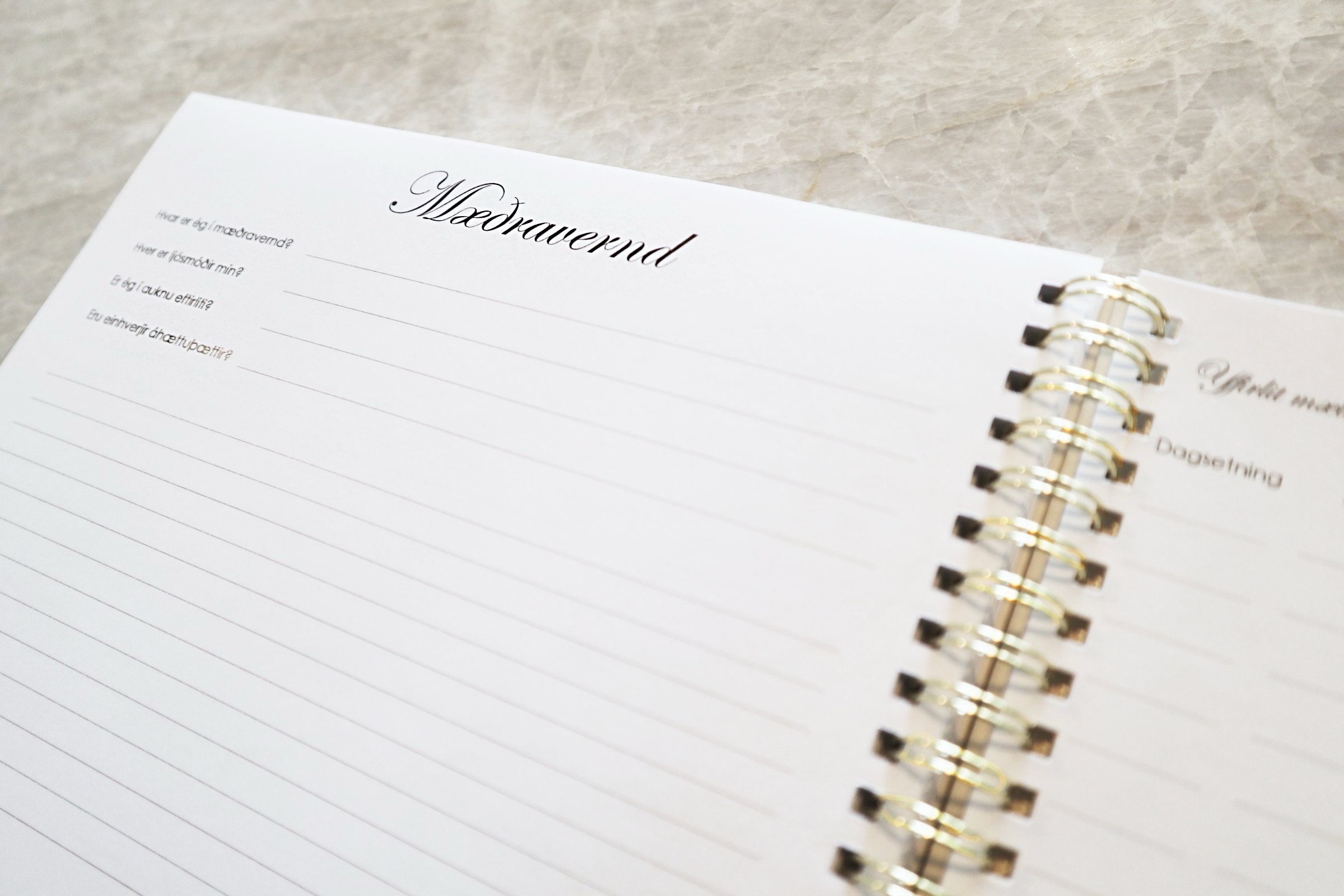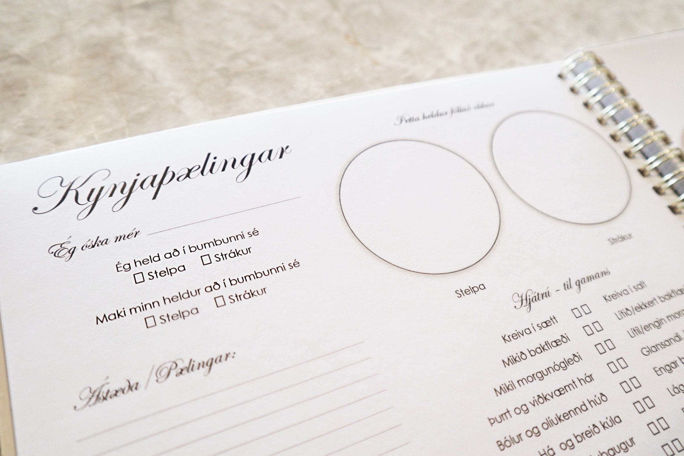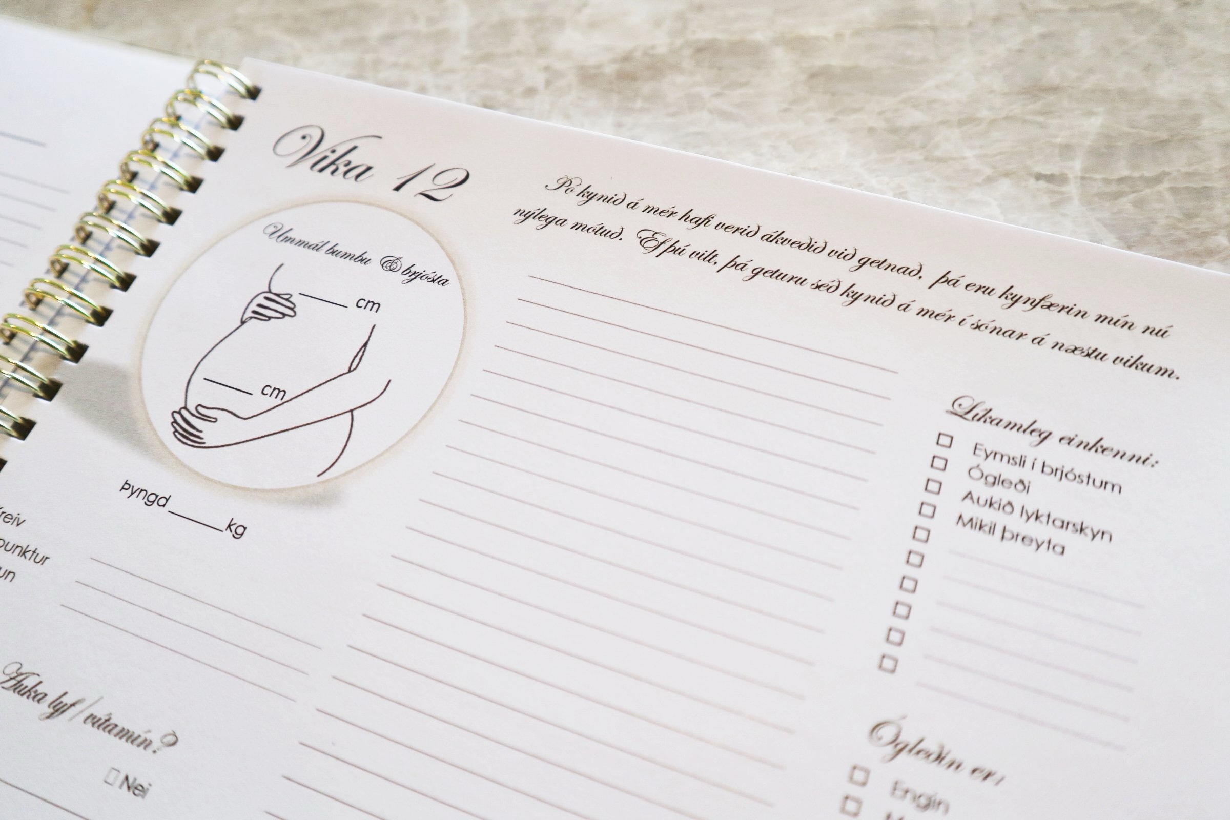 Einstaklega falleg og stílhrein dagbók fyrir barnshafandi konur, til að halda utanum og skrásetja upplifun og líðan á meðgöngu.