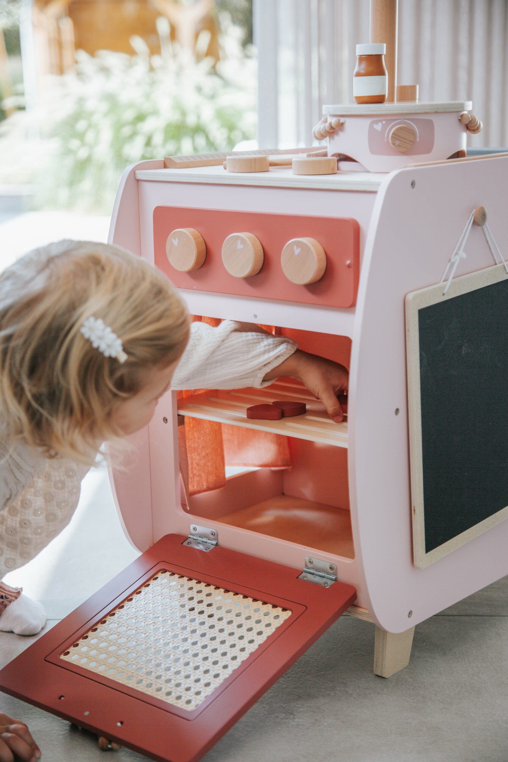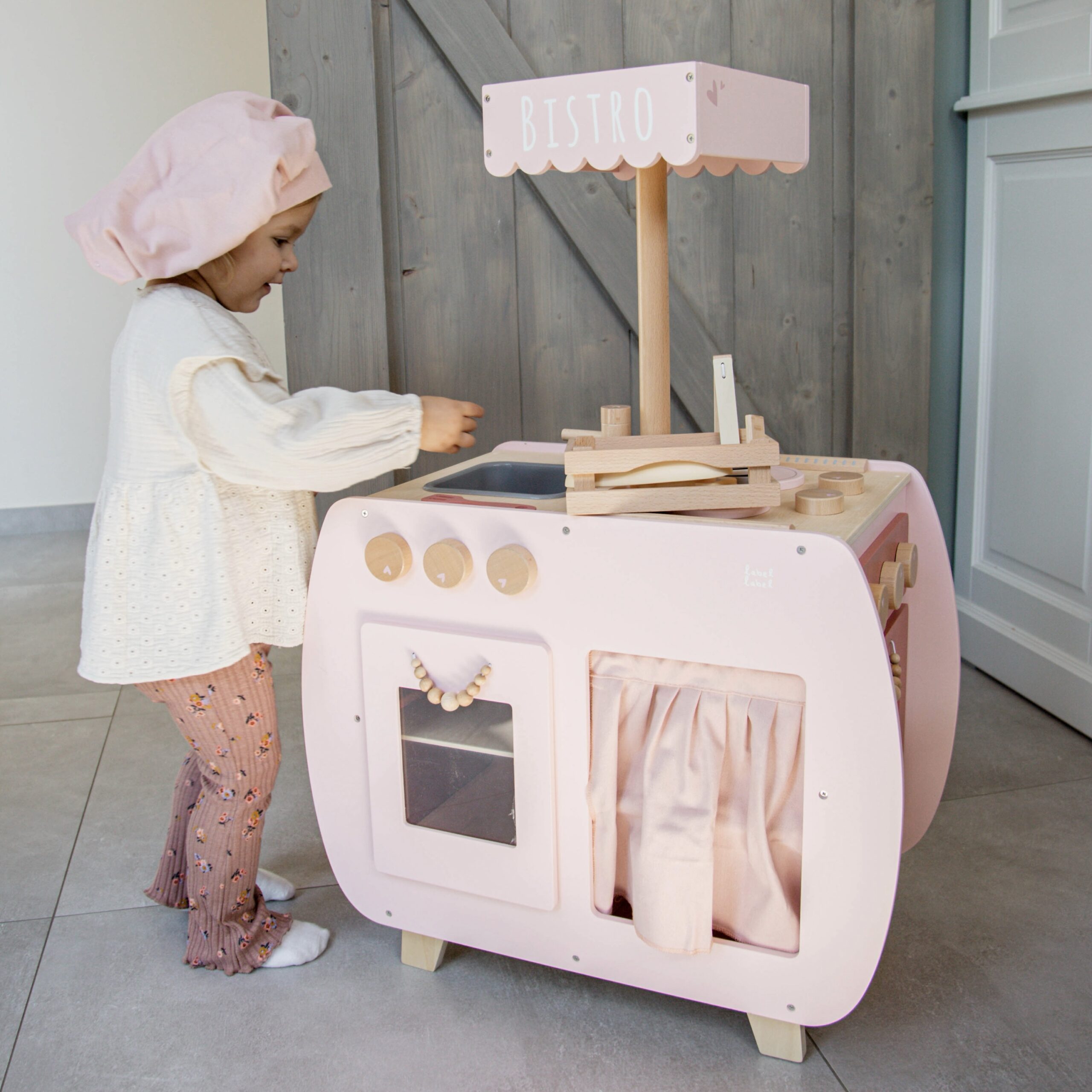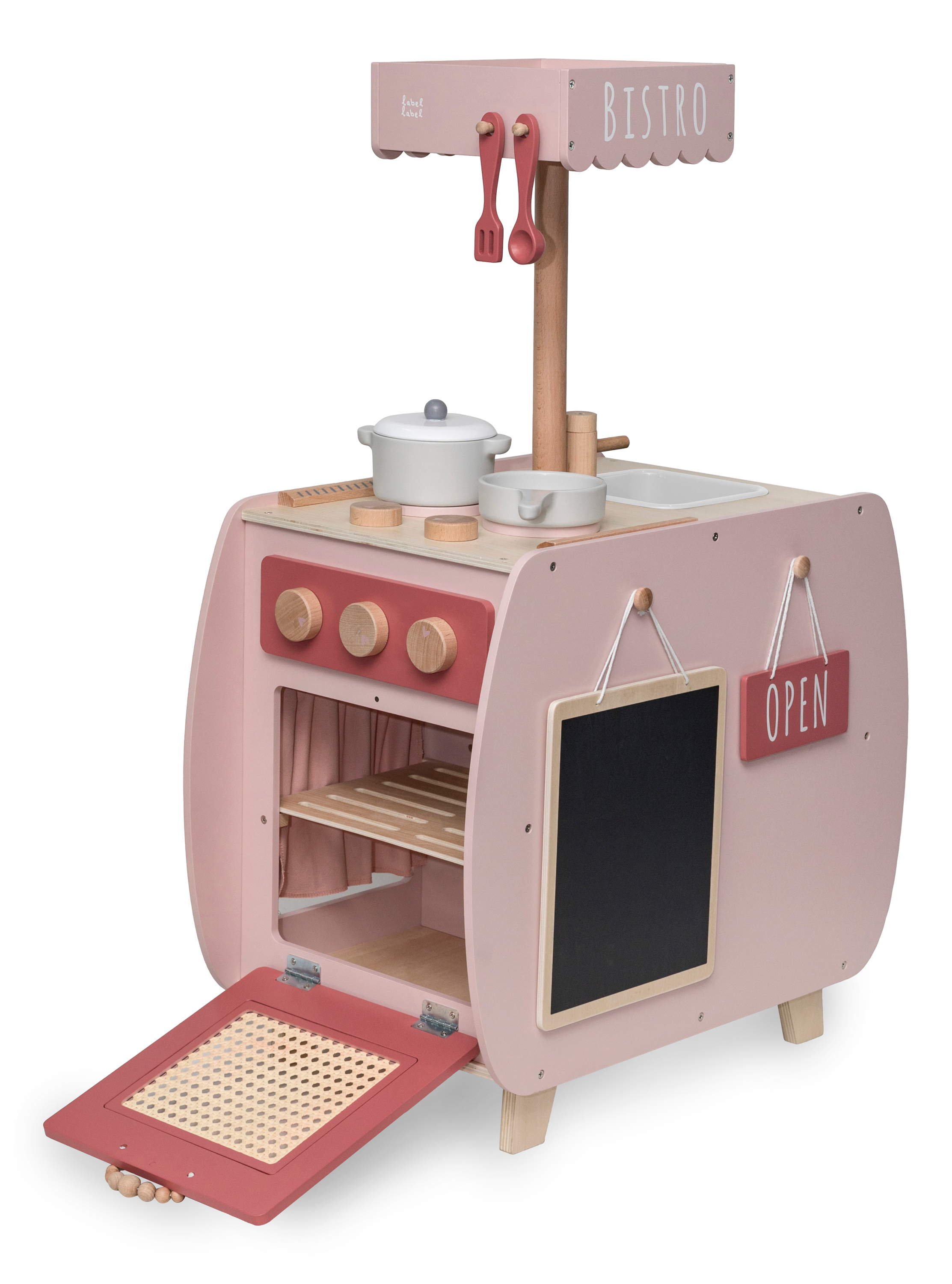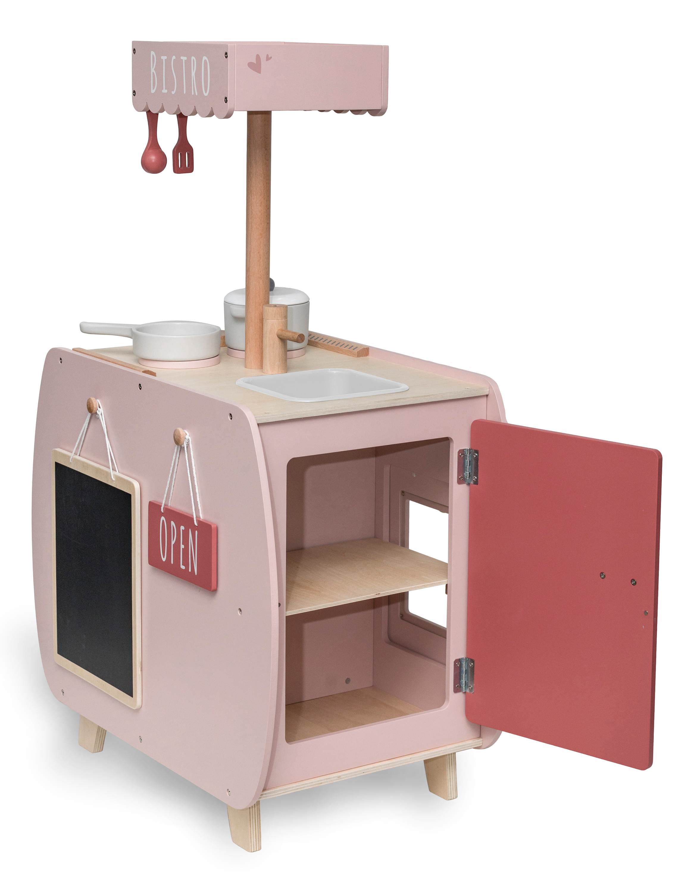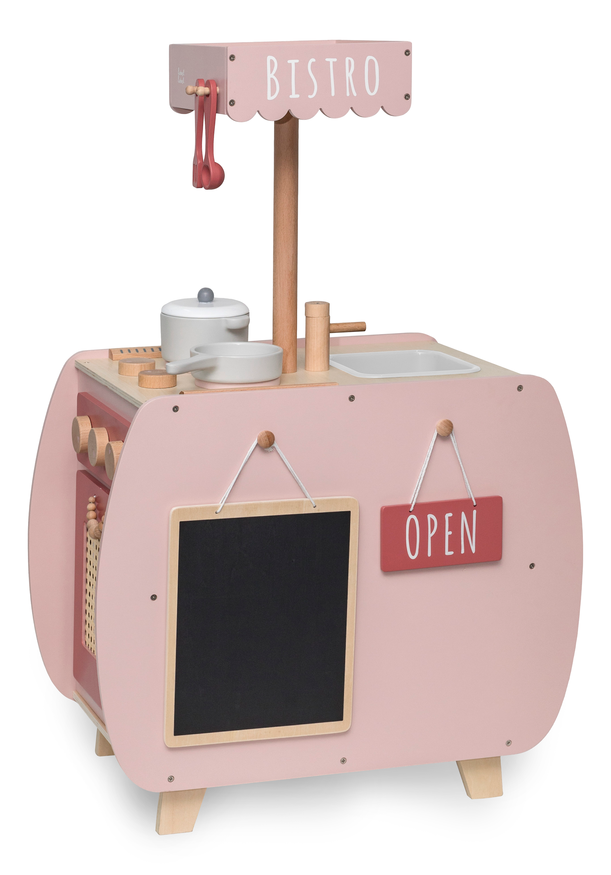 Create chic meals and serve them in your own fabulous bistro. Little chefs have plenty of room to create first-class dishes in their kitchen island. All accessories such as a pan, a frying pan, a chef’s hat, a spatula and a spoon are included.
